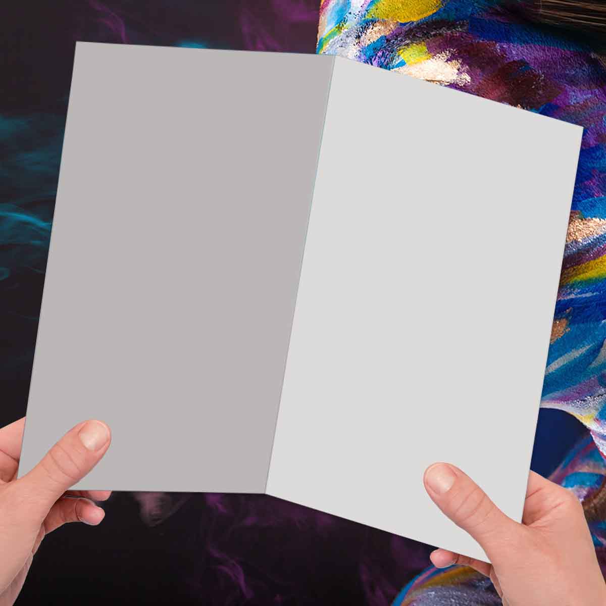 Prezentační desky bez chlopní jsou desky pouze uprostřed přeložené (big) na výslednou velikost A4. Desky mají v rozloženém formátu rozměr 307 x 430 mm (zvětšený formát A3) - pro tvorbu grafiky jsme připravili šablony v pdf a ai (na PC je naleznete pod produktovým obrázkem a na mobilních telefonech v sekci 2/4 Nahrajte tisková data).